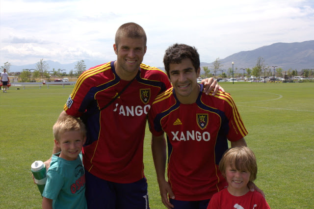 One day out in Utah, Emily had a genius idea to take the kids to go watch the RSL team practice. Matthias was busy taking the UT bar, so he couldn't join us, (much to his disappointment). We got there and sat on the sidelines. I felt a bit sheepish sitting there as close as we were watching them all play... it brought me back to my high school days. The boys loved it of course, which was really the reason we went. When they were running ladders at the end, Ty ran with them on the sideline. It was fun being able to spot the players we knew. I didn't dare ask them for pictures, so I left it to Emily and she & Ty were brave enough to walk right up to them take shots when practice was over. How could they not?? Thanks for the good time Auntie Em. GOOOOOOOO RSL!